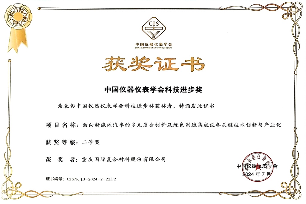 近期,在成都举办的2024年度中国仪器仪表学会科学技术奖颁奖盛典,云天化国际复材联合重庆文理学院、大连理工大学、重庆长安汽车公司申报的“面向新能源汽车的多元复合材料及绿色制造集成设备关键技术创新与产业化”项目荣获科技进步二等奖。